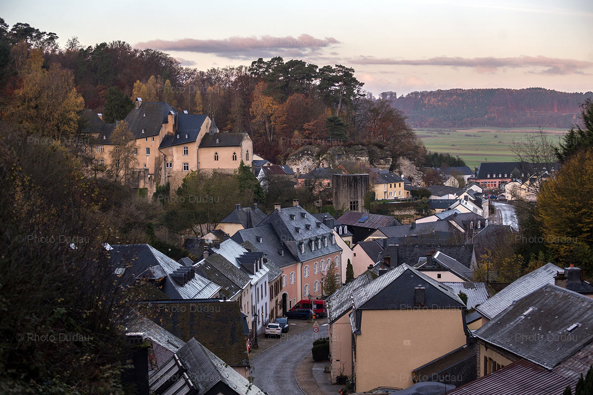 Commercial photo of Bourglinster town with Bourglinster Castle in the Grand Duchy of Luxembourg.