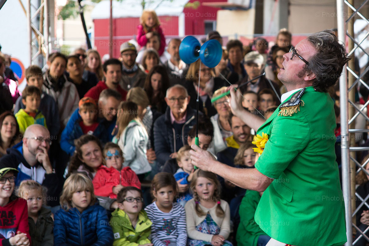 Editorial stock image of Jonn Happi performing in front of young audience at Ettelbrooklyn Street Fest in Ettelbruck, Luxembourg, on 9 September 2017.