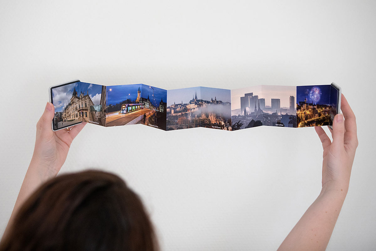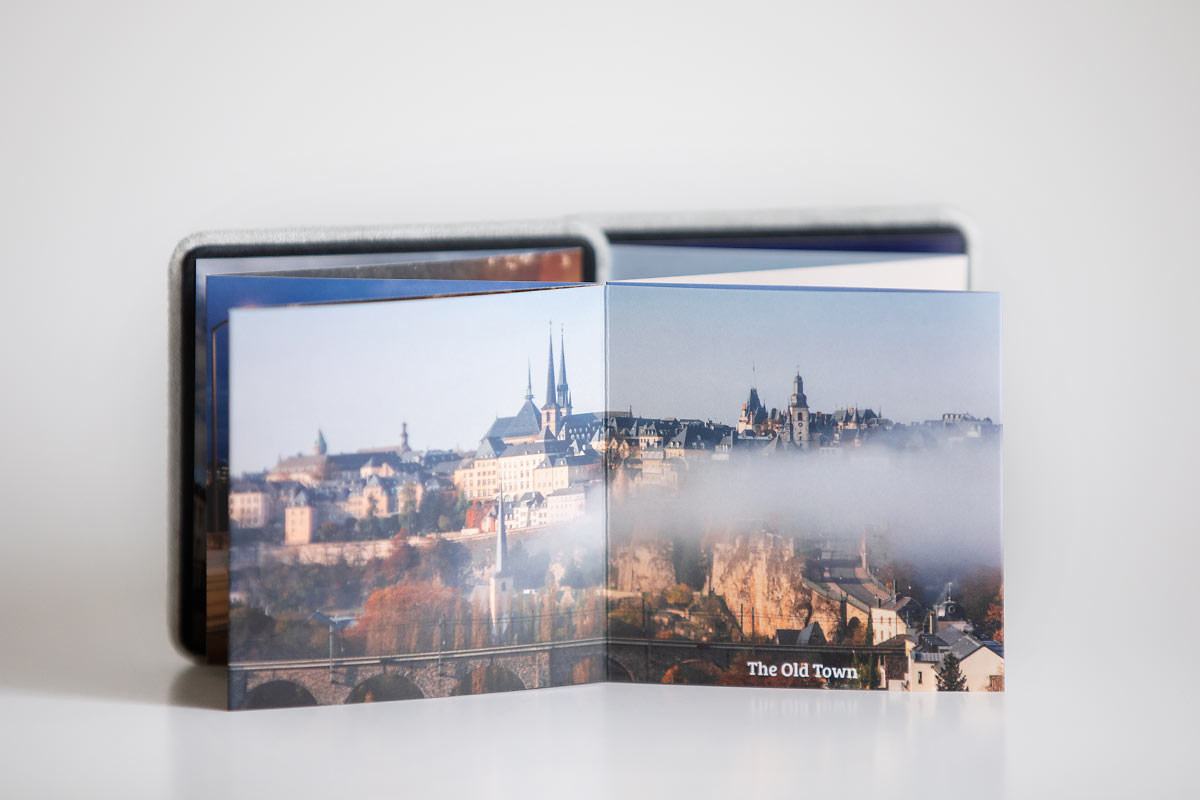The Luxembourg Magical Visit Card is a small collection of some of my best images of Luxembourg, presented in a pocket-size square booklet. Just like Luxembourg, it seems small at first sight, in just 7.5×7.5 cm, but it unfolds to the curious eye to show its true beauty at the interior, when displayed in its full lentgth of 70 cm.