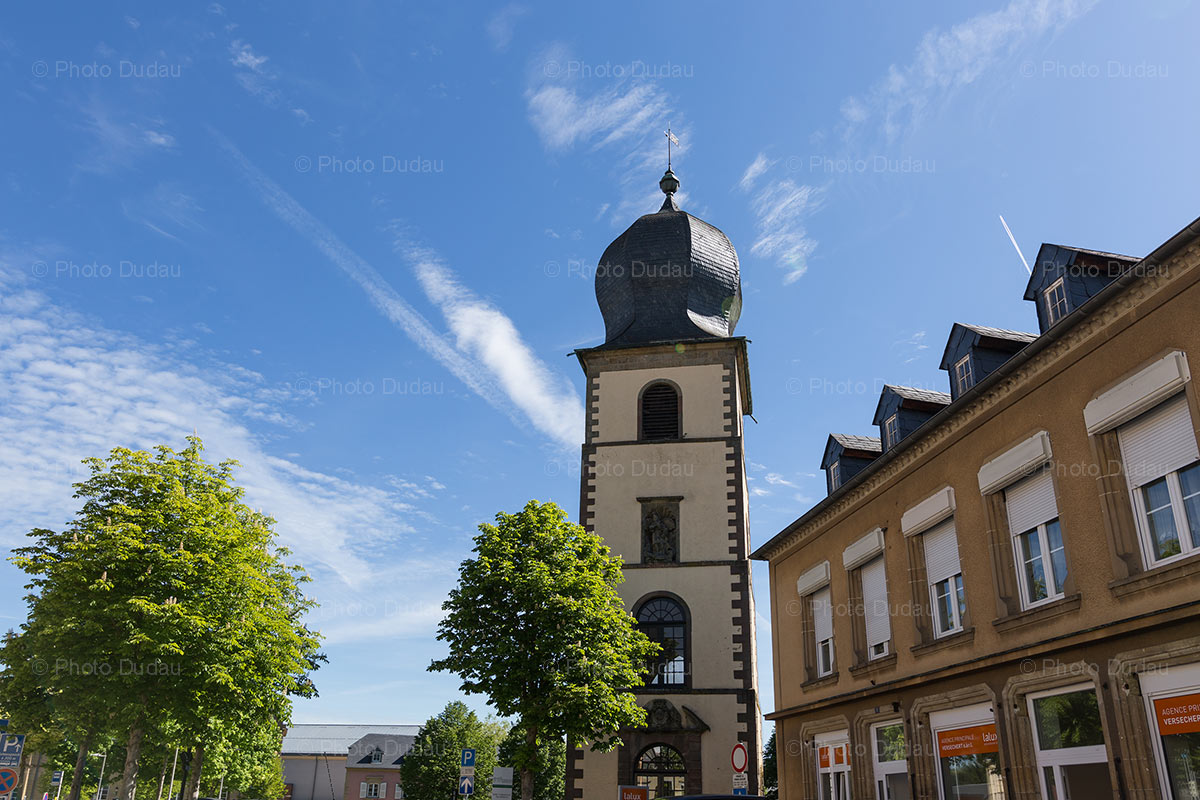 Editorial stock photo of Saint Michel tower in Mersch town in the Grand Duchy of Luxembourg.