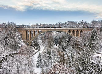 Petrusse Valley and Pont Adolphe bridge during winter in Luxembourg city